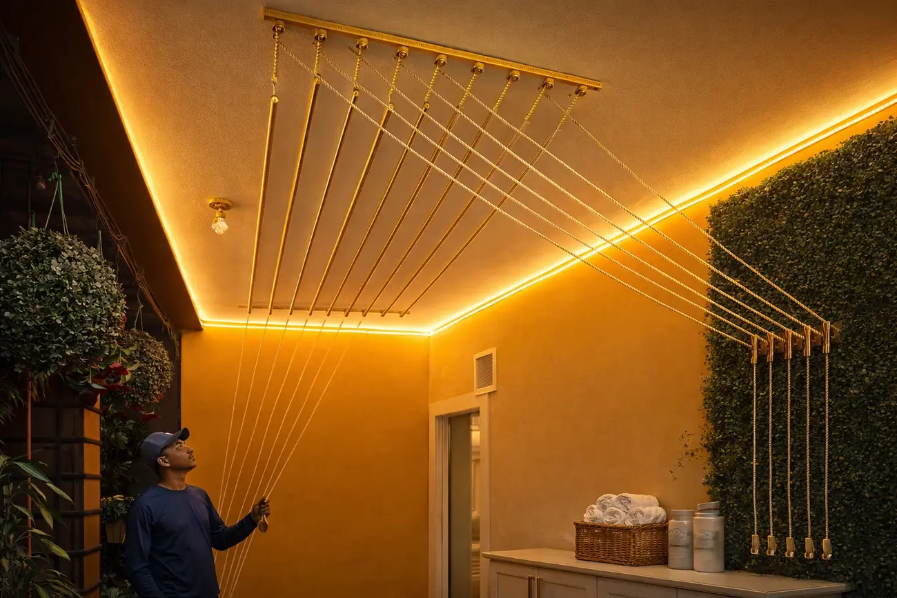 In larger apartment communities, households want a cloth-hanger system that can handle real family volume without making the balcony look industrial. That changes the product decision completely. Families are not simply buying rods. They are trying to recover utility space, improve drying flow, and make sure clothes can hang naturally without crowding the only workable path. In Bachupally, a good cloth hanger has to consider ceiling height, drop comfort, wall distance, window swing, and how laundry is actually moved in and out of the area. When those details are ignored, even a decent-looking system becomes irritating in daily use. Rods may hang too low, the balcony may lose its entry strip, or the family may still have to keep a stand nearby for longer garments. Better planning solves that at the source. It uses the ceiling properly and keeps the lower zone usable for people, buckets, machines, or day-to-day cleaning work.